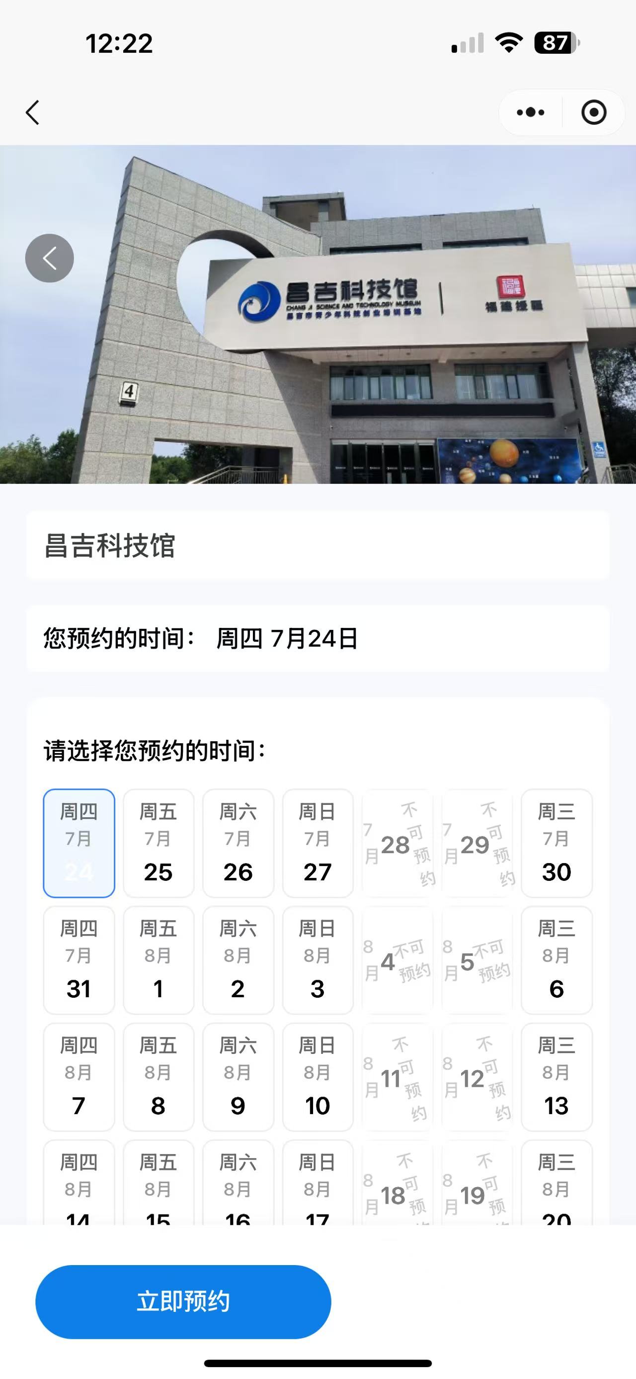 场馆、科技馆、博物馆、景区预约小程序上线